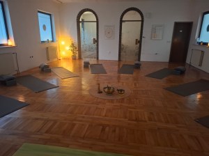 V dvorani lahko brez težav in z dovolj osebnega prostora izvaja vadbo na jogijskih blazinah optimalno 12 oseb. V kolikor gre za meditacijo ali zvočno kopel in ležijo vsi na tleh je prostora tudi za 16-20 oseb.