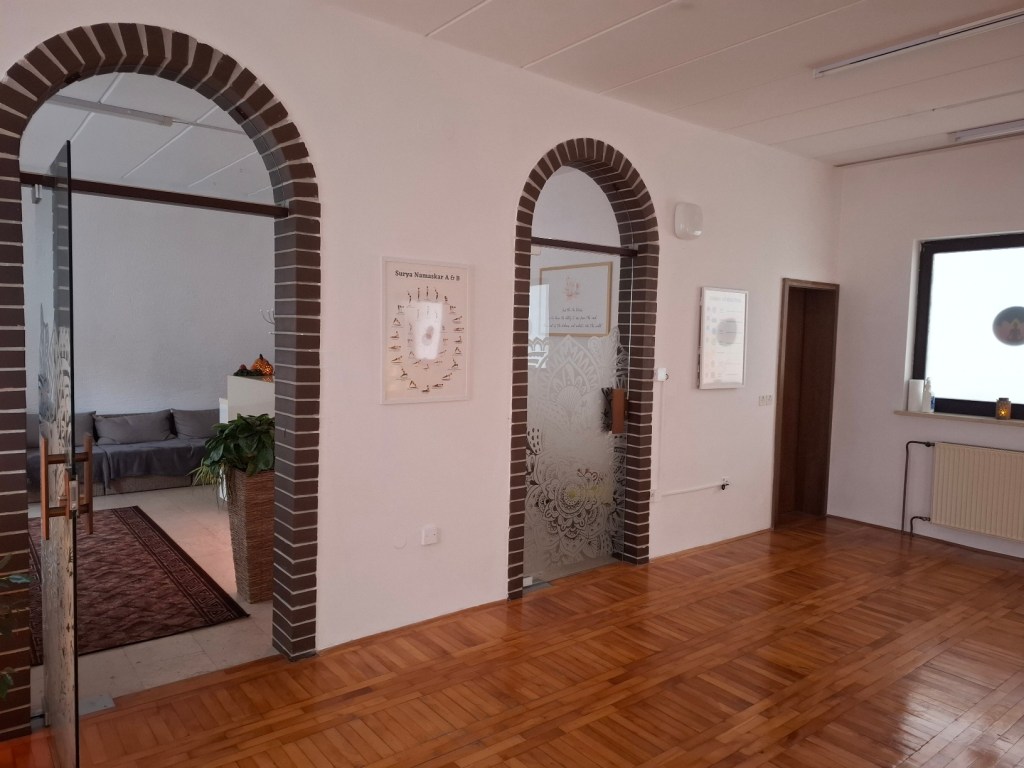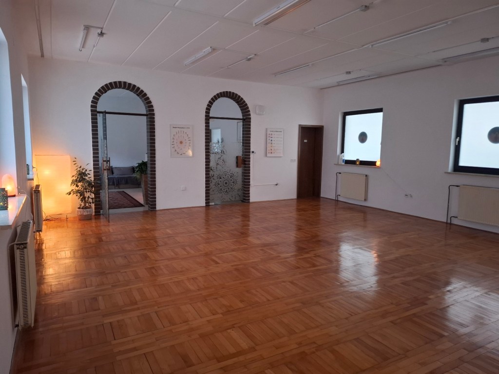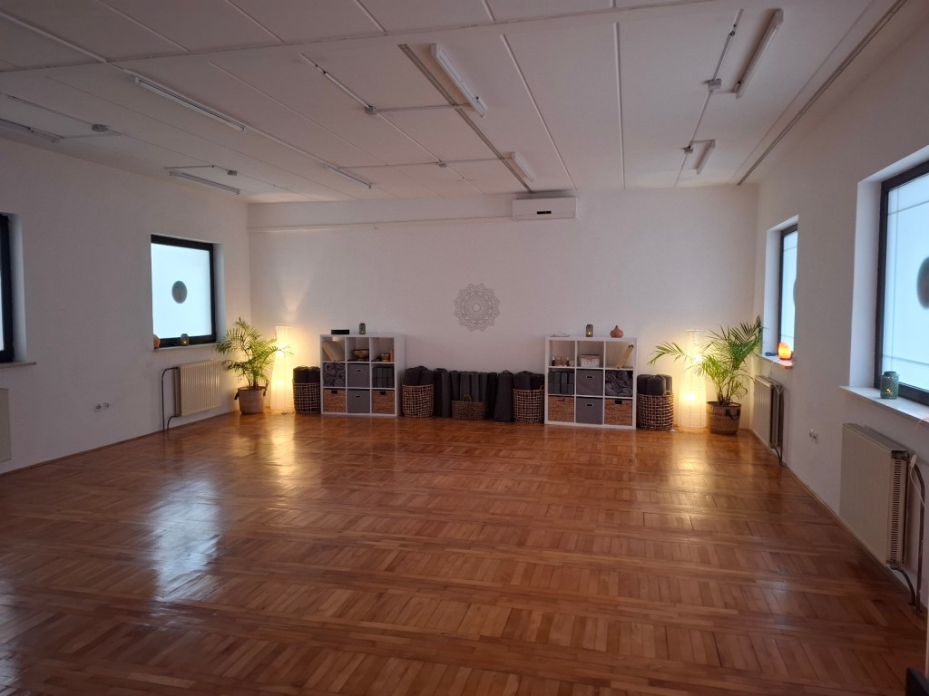 Poleg vadb joge nudimo tudi najem našega vadbenega prostora za različne skupinske vadbe, meditacije, plese ali razne delavnice. Prostor ima recepcijo, sama dvorana ima lesen parket, veliko oken, zato je veliko dnevne svetlobe. V sklopu studia je na voljo tudi majhna kuhinjska niša in sanitarije.